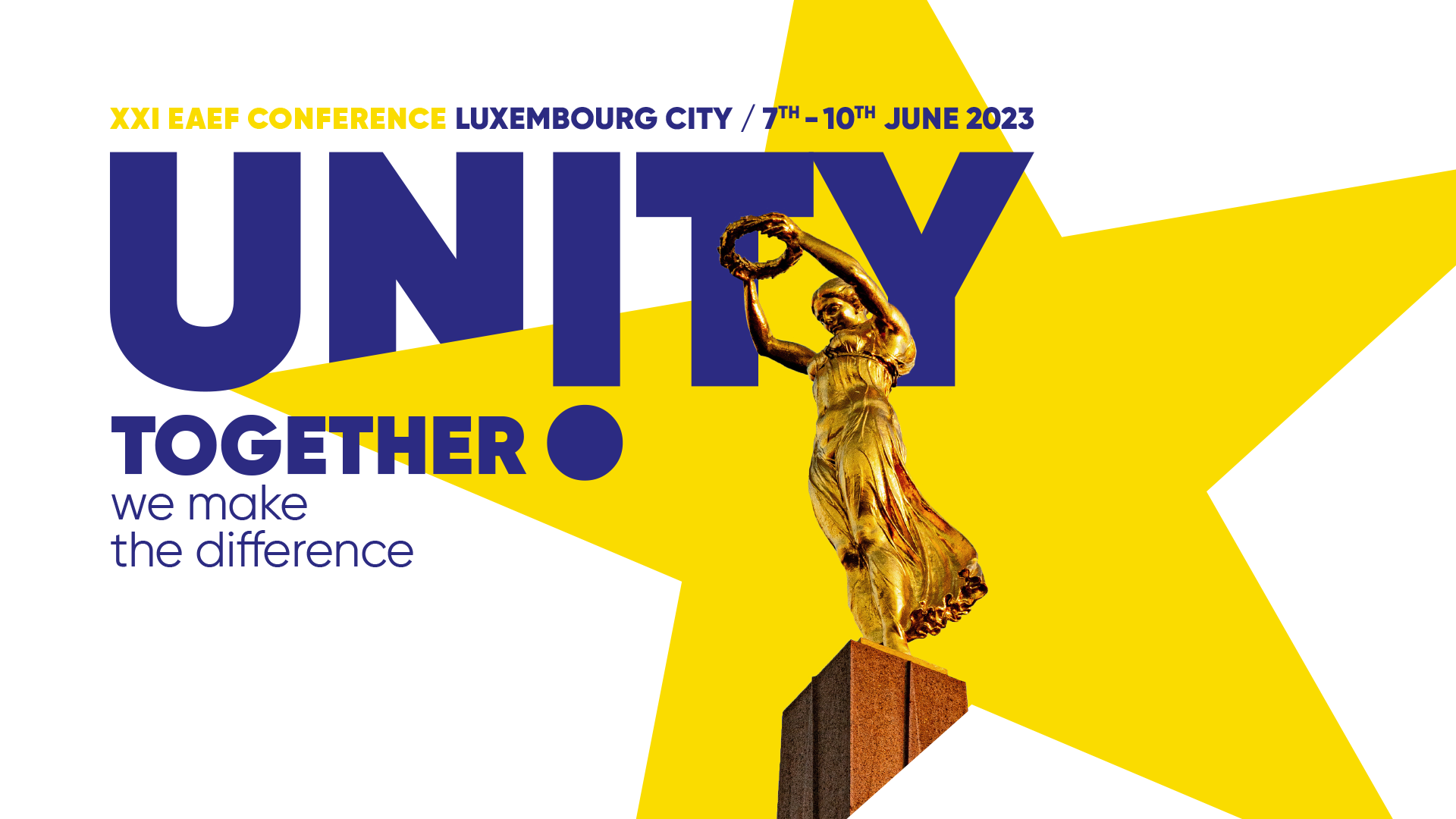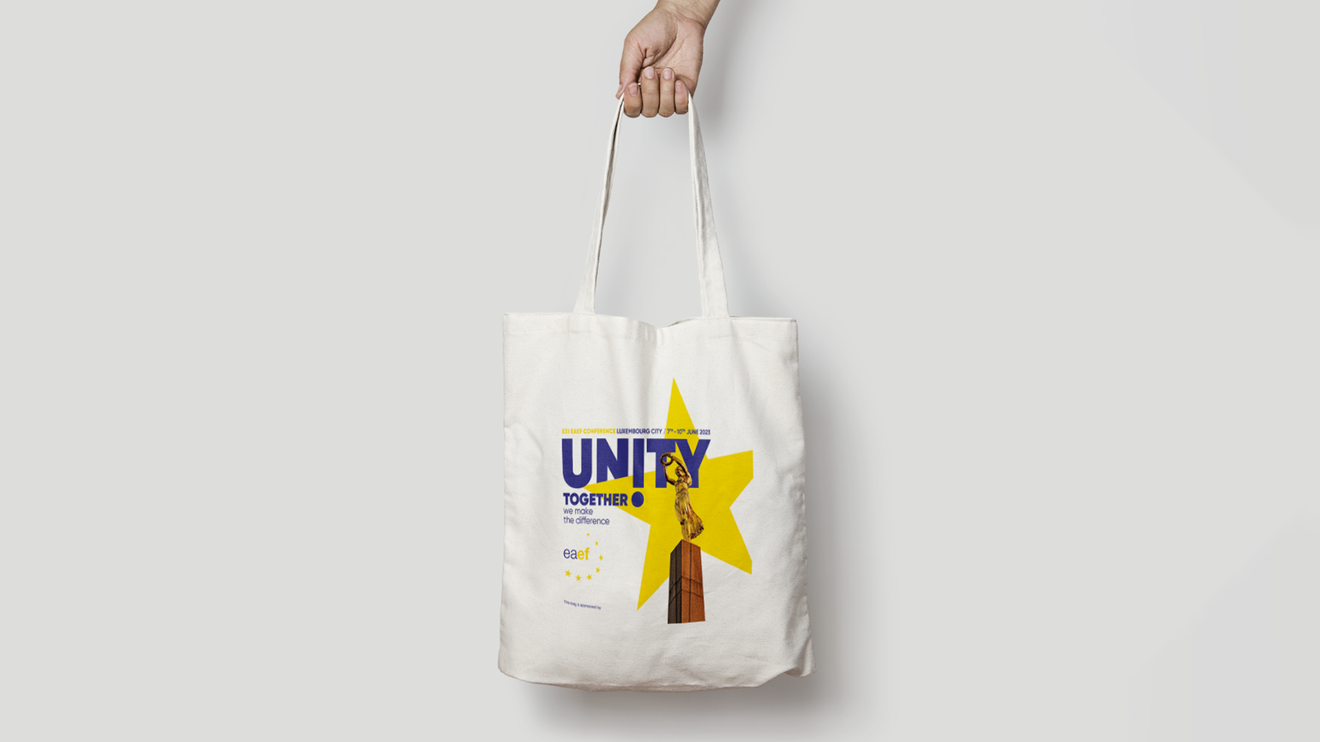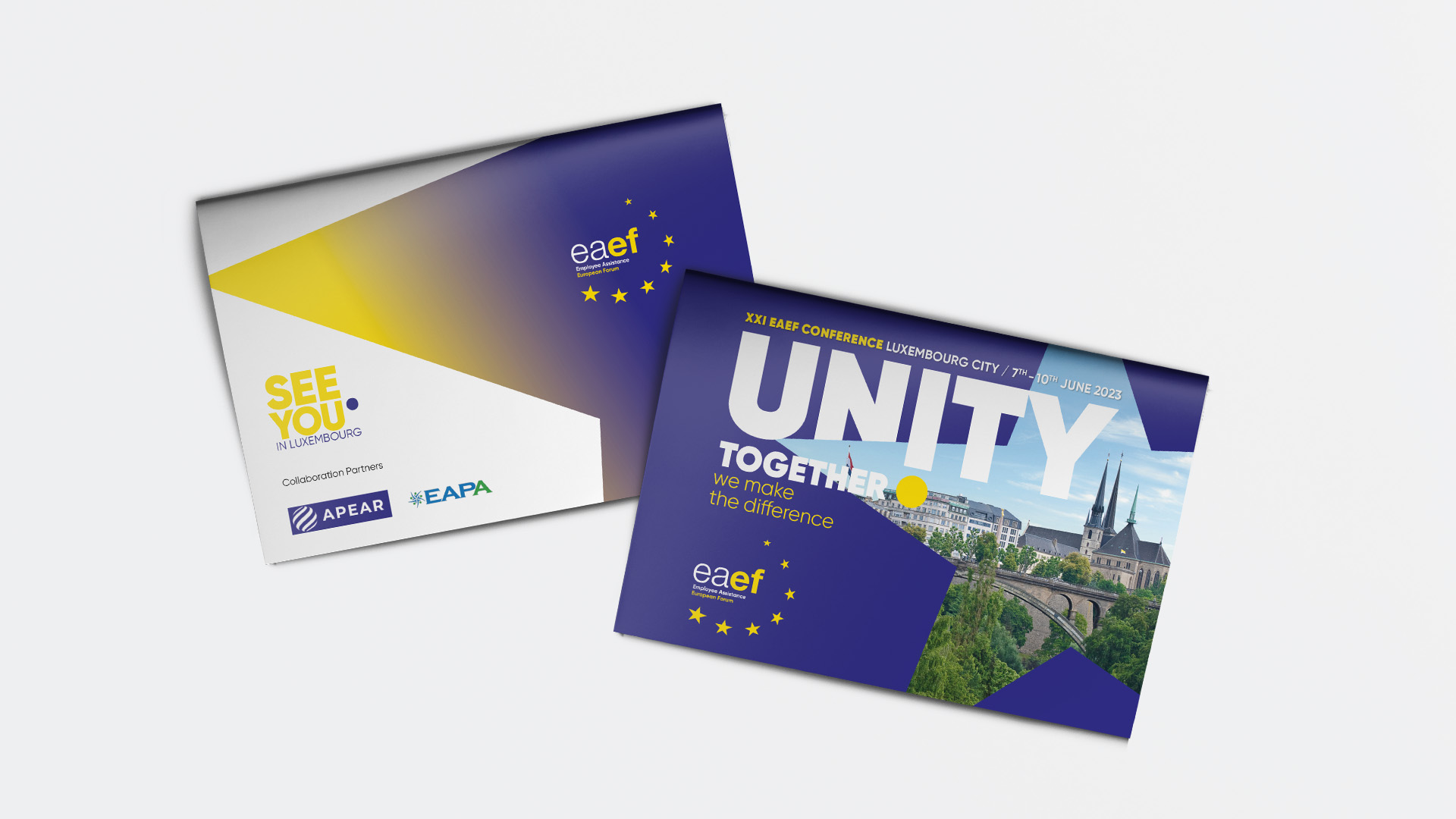 RED AGENCY s'est vue confier l’identité visuelle de la XXIe conférence de l'EAEF au Luxembourg et la création des outils de communication : le programme, le roll-up et le tote bag de la conférence.