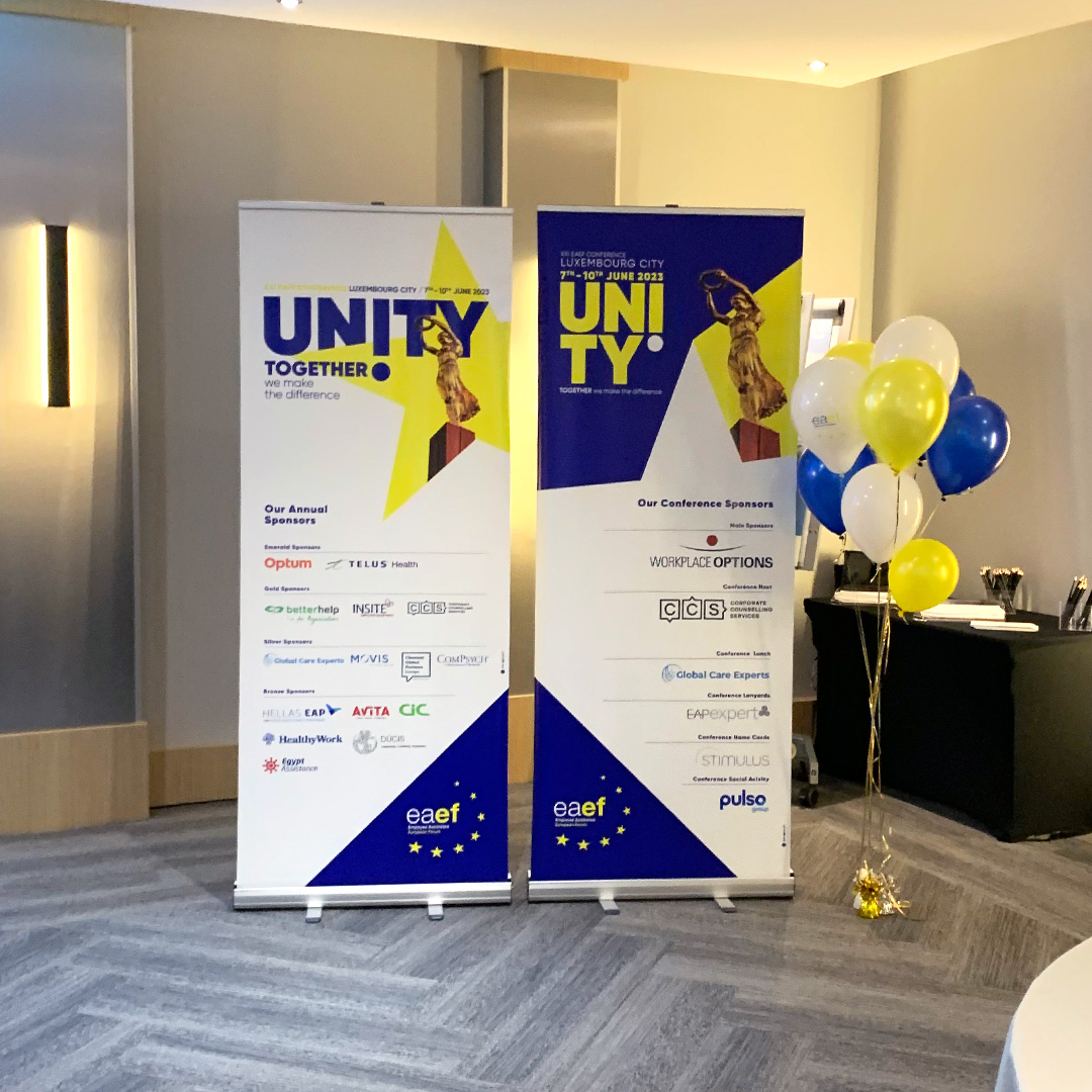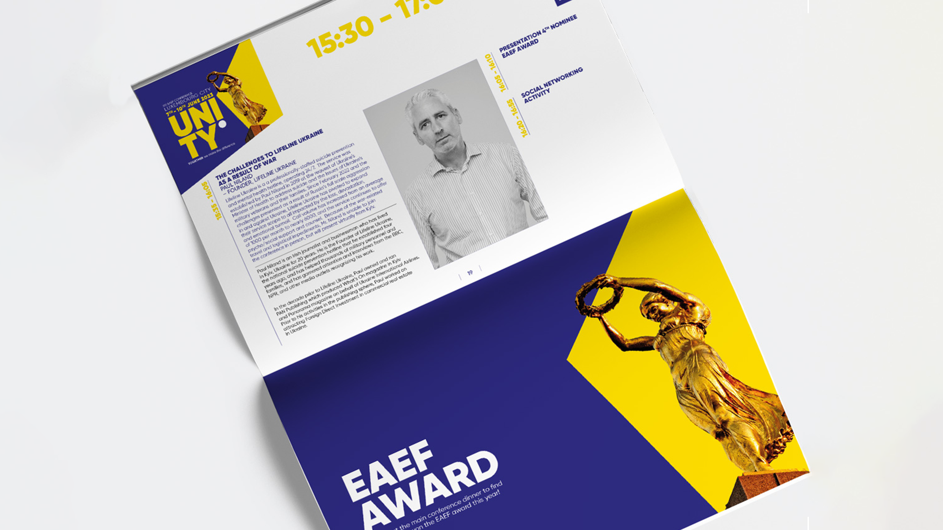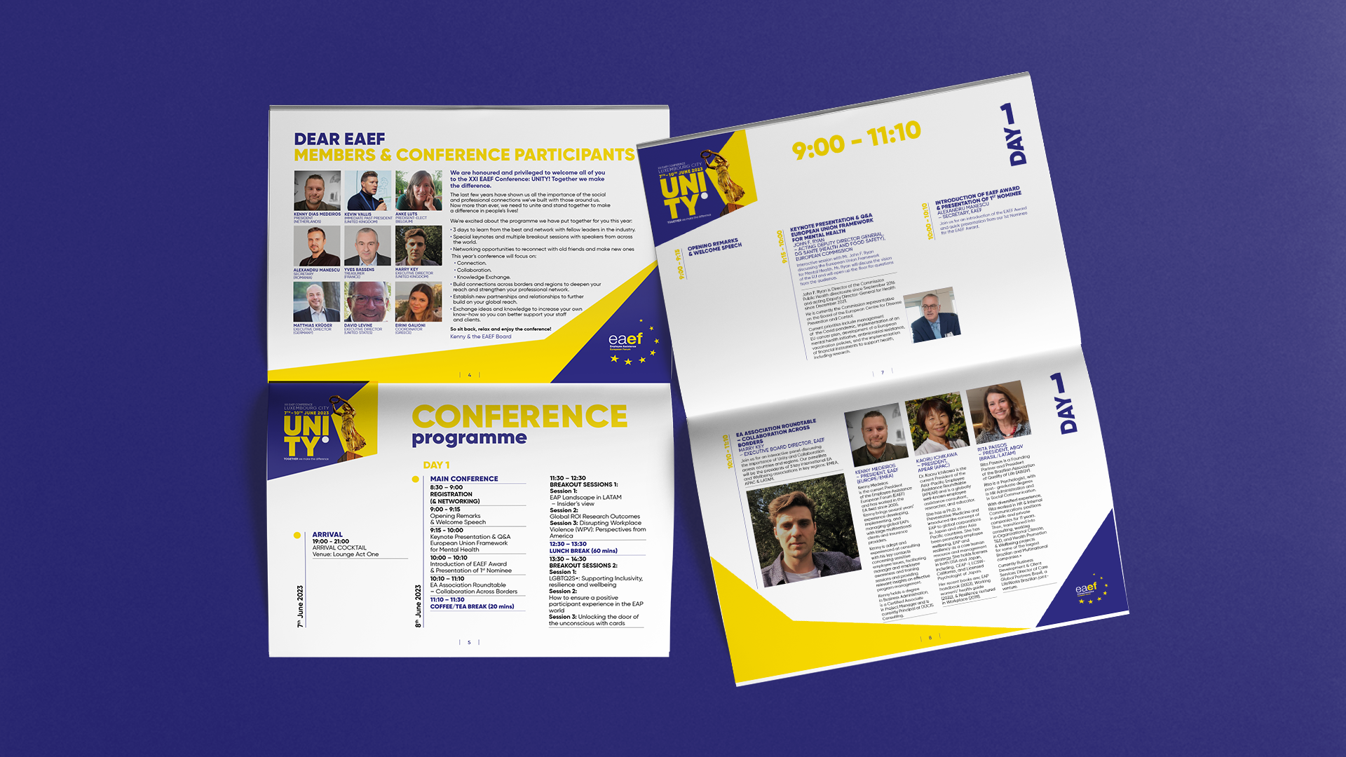 RED AGENCY s'est vue confier l’identité visuelle de la XXIe conférence de l'EAEF au Luxembourg et la création des outils de communication : le programme, le roll-up et le tote bag de la conférence.