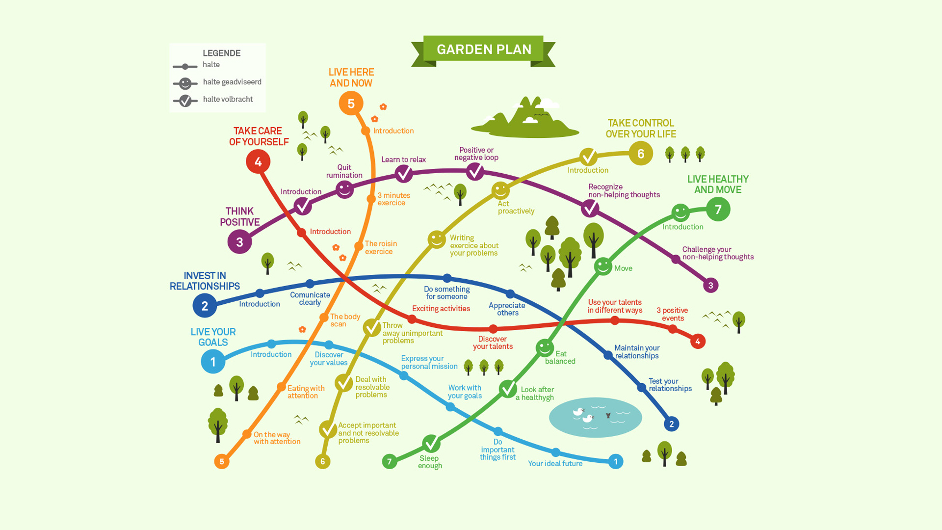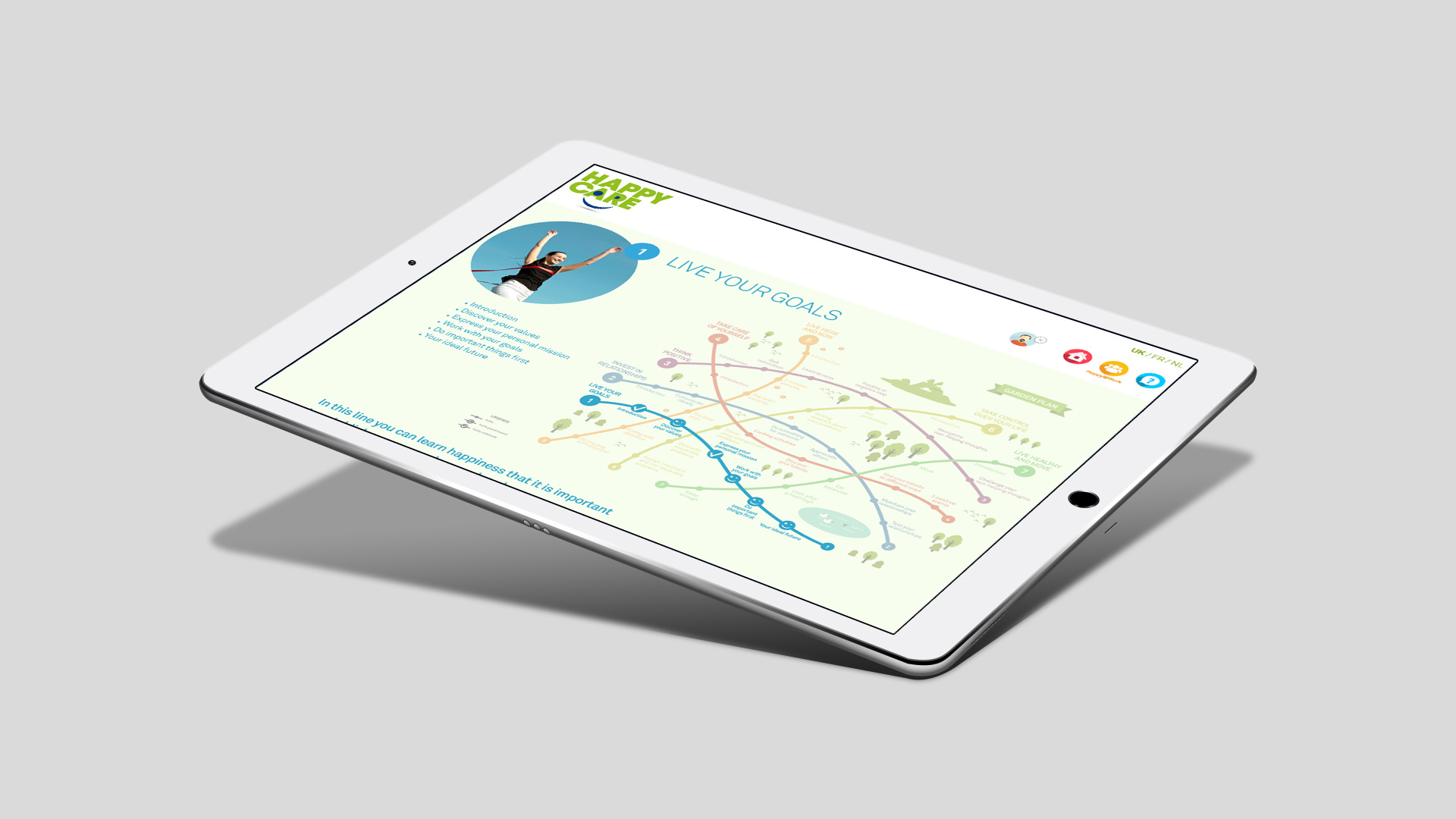 - Créer et nommer une marque de coaching positif en ligne : « Happy Care » avec sa signature « Take the 7 paths of happiness » et un territoire d’expression résolument positif.