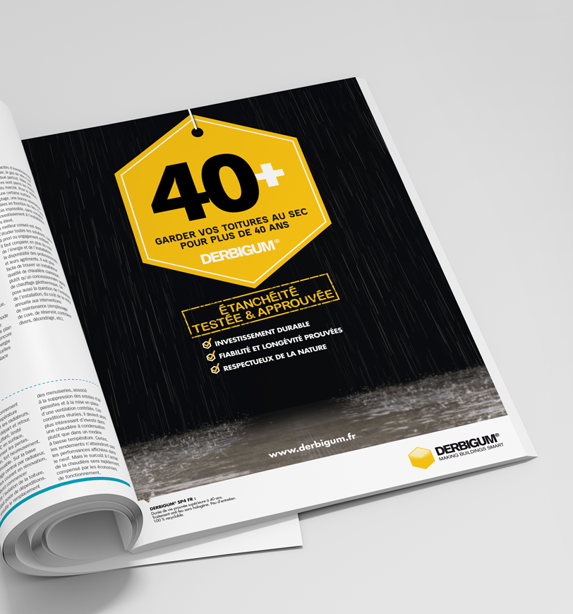 DERBIGUM est l'un des leaders européens du marché de l’étanchéité des toitures et des terrasses. Ses solutions d’étanchéité en Neuf et Rénovation sont durables, simples et respectueuses de l’environnement. En France, DERBIGUM est challengeur sur son marché et a fait appel à RED AGENCY pour développer sa notoriété auprès de ses différentes cibles BtoB. Pour répondre à cet enjeu majeur, RED AGENCY a d’abord imaginé et construit un label durabilité identifiable (40+), décliné ensuite dans une communication 360° : relations presse auprès de supports BtoB print et digitaux (BATIACTU, ZEPROS, BATIWEB, etc…), annonces dans la presse prescripteurs architectes (Créé, …), salons professionnels (NORDBAT, ARCHIBAT…).