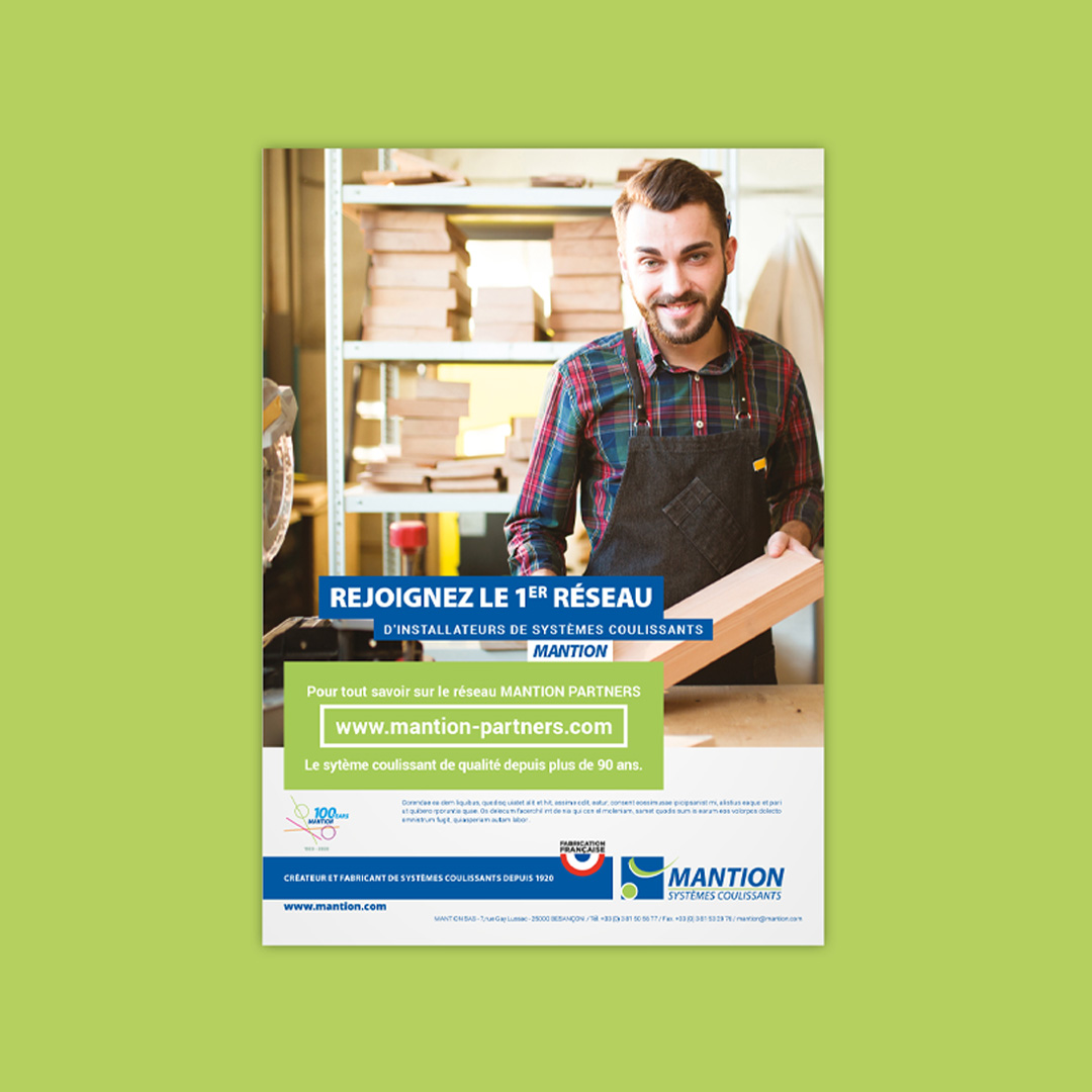 MANTION conçoit, fabrique et commercialise des systèmes coulissants pour les secteurs du Bâtiment et de l'Industrie depuis plus de 100 ans. Pour accompagner la communication de MANTION, « parler le même langage » en France, mais aussi à l'International, et inscrire l'entreprise dans une nouvelle dynamique, RED AGENCY a conçu et pensé une charte graphique permettant une véritable reconnaissance.