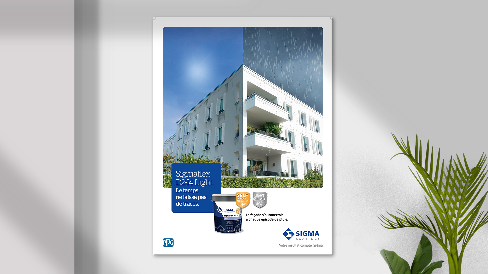 Le groupe PPG, leader mondial de l'industrie des revêtements et produits de spécialité, fournit continuellement des solutions de grande qualité, innovantes et durables pour les professionnels. L’équipe SIGMA, marque Européenne et historique de peinture professionnelle du groupe PPG, a interrogé RED AGENCY pour le lancement du produit Sigmaflex D2-I4 Light, le plus polyvalent de la gamme façade.