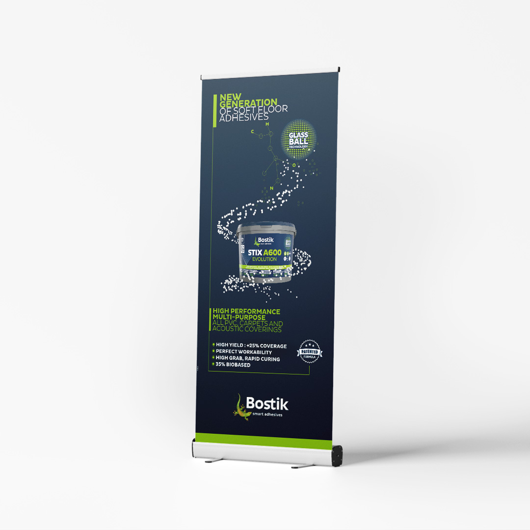 Leader mondial des solutions de collage, BOSTIK est présent dans une cinquantaine de pays et emploie plus 5 000 personnes. La force de la marque est non seulement son expertise sur ce secteur depuis plus de 125 ans, mais également son effort constant pour développer de nouvelles solutions innovantes et toujours plus performantes. Pour le lancement à l’international de son produit innovant le STIX A600 ÉVOLUTION, BOSTIK a demandé à RED AGENCY de réaliser la charte graphique associée à cette nouveauté, ainsi qu’un ensemble d’outils pour communiquer auprès de leurs différentes cibles (équipe commerciale et clients) : Vidéo de lancement UK — Key visual / 3D — Présentations commerciales — PLV / KAKEMONO / RACK — Goodies — Signature email.