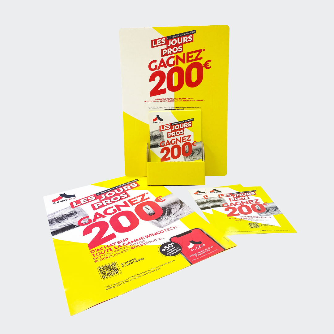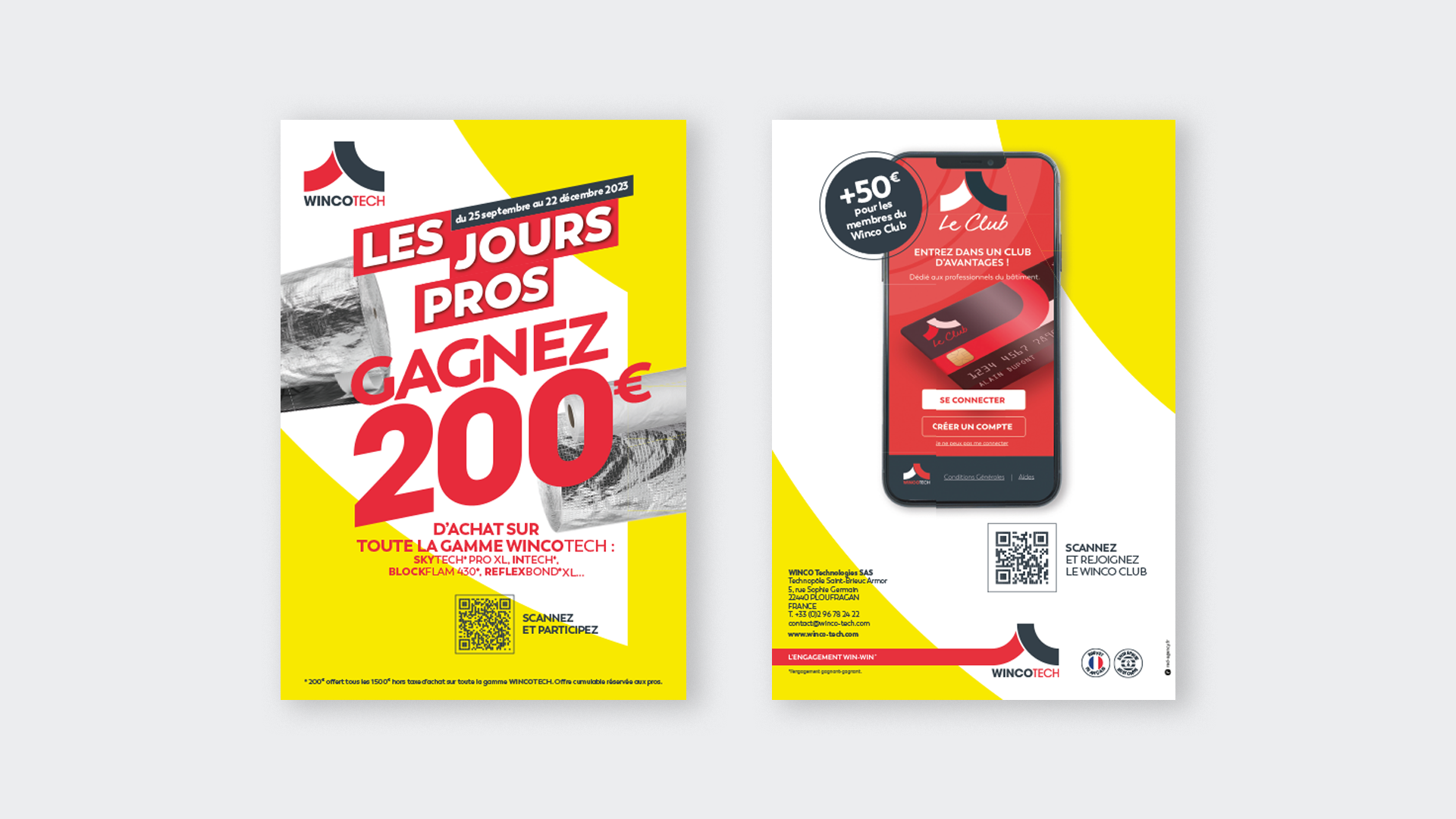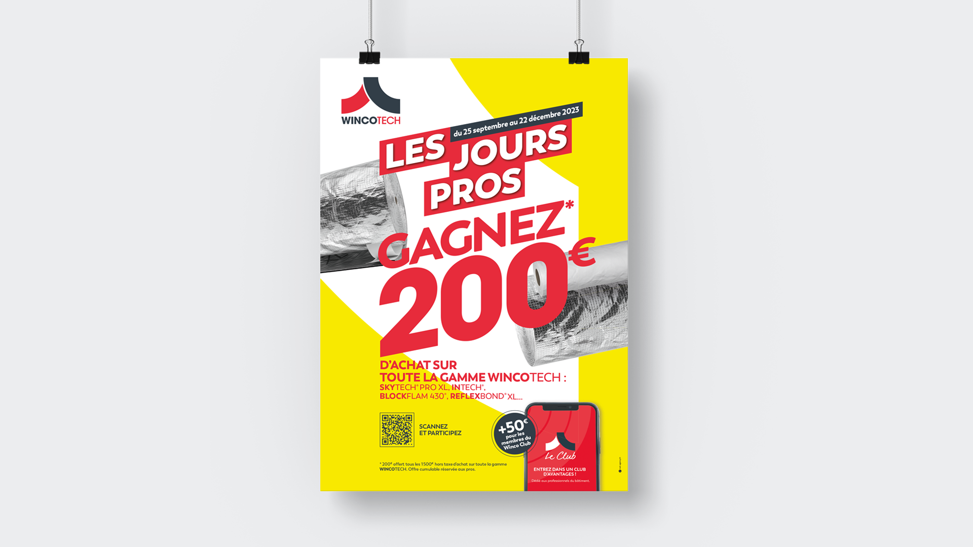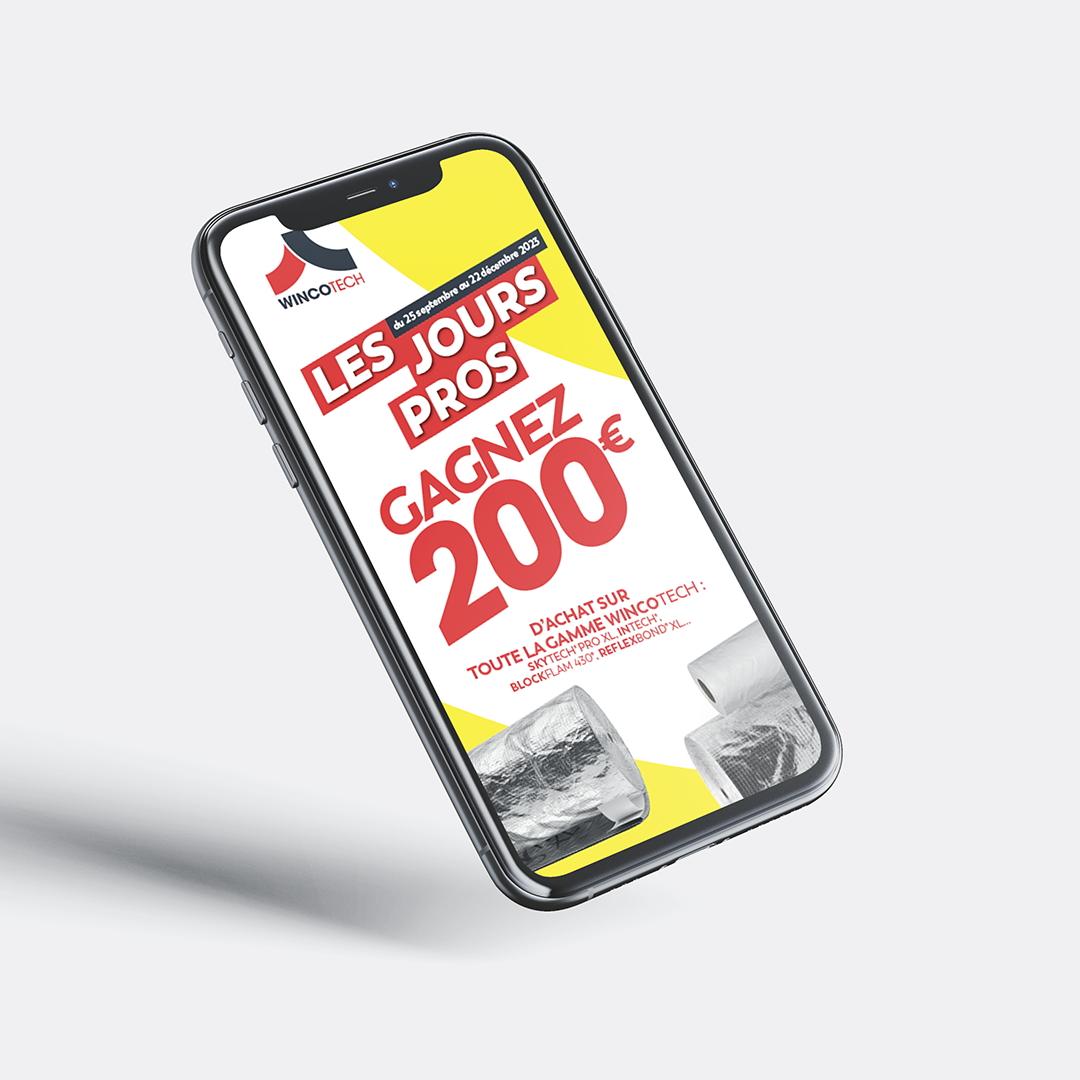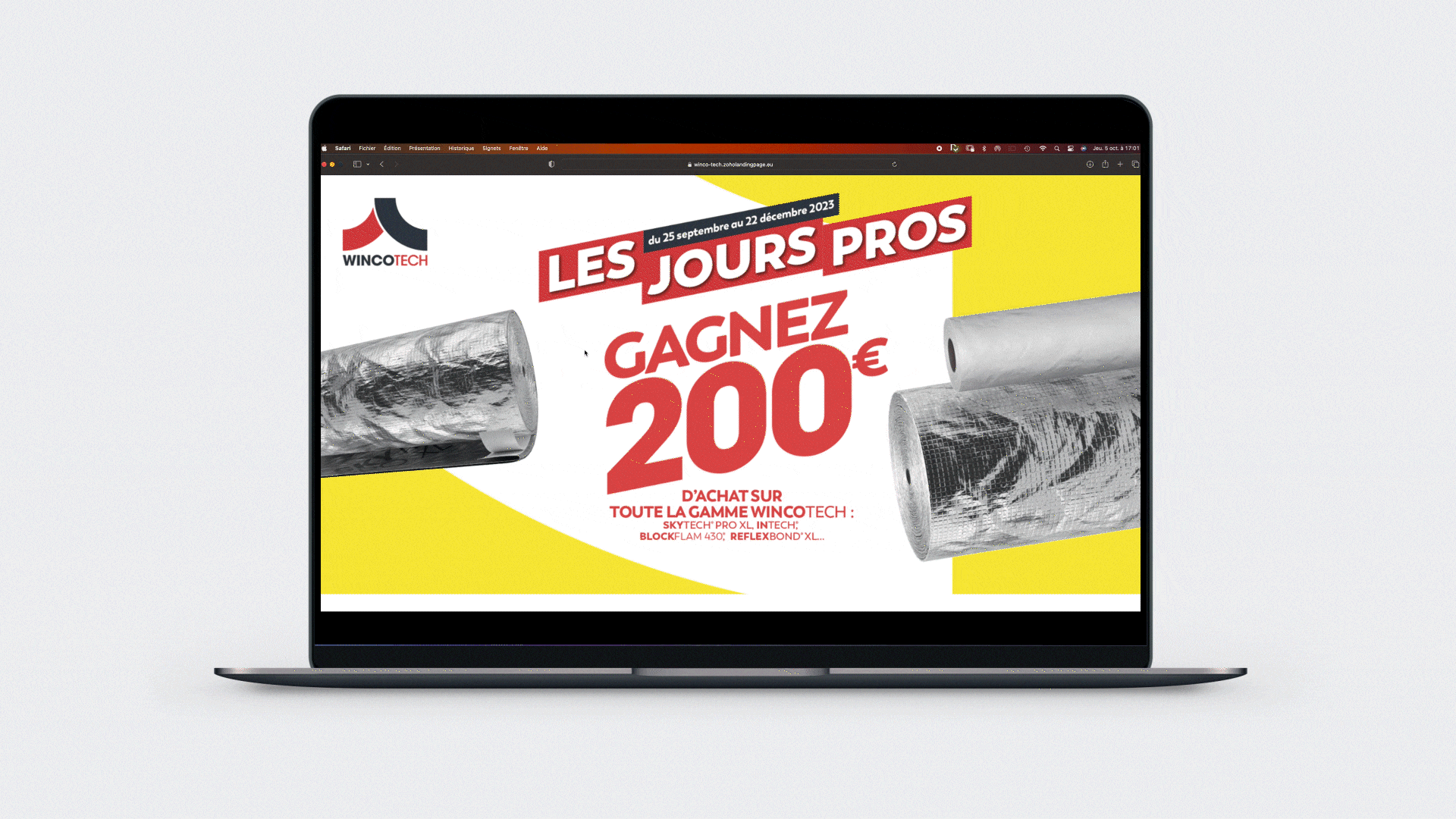 WINCO Technologies est une société bretonne indépendante, spécialiste en produits incombustibles et présente sur le marché de l’isolation pour l’industrie et le bâtiment depuis 1988. Pour accompagner son développement commercial en France, WINCOTECH et son agence, RED AGENCY ont mis en place une opération promotionnelle sur toute la gamme WINCOTECH. Une offre promotionnelle qui s’appuie sur une ODR (Offre de remboursement) de 200 € tous les 1 500 € d’achats HT. Au programme : une landing page dédiée à l’opération, un kit de communication magasin (PLV, Flyer) et des bannières web.