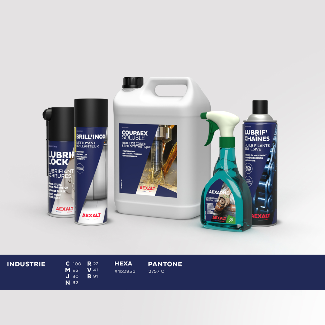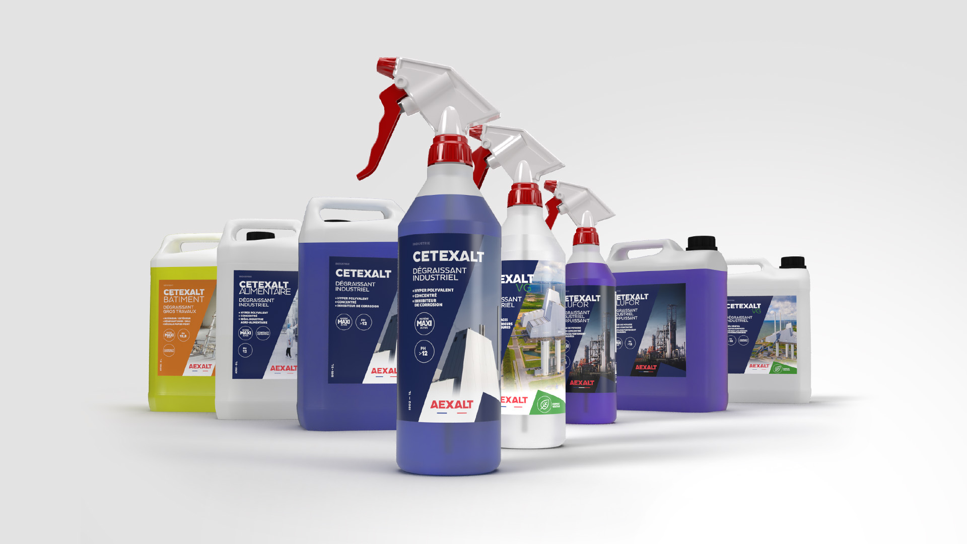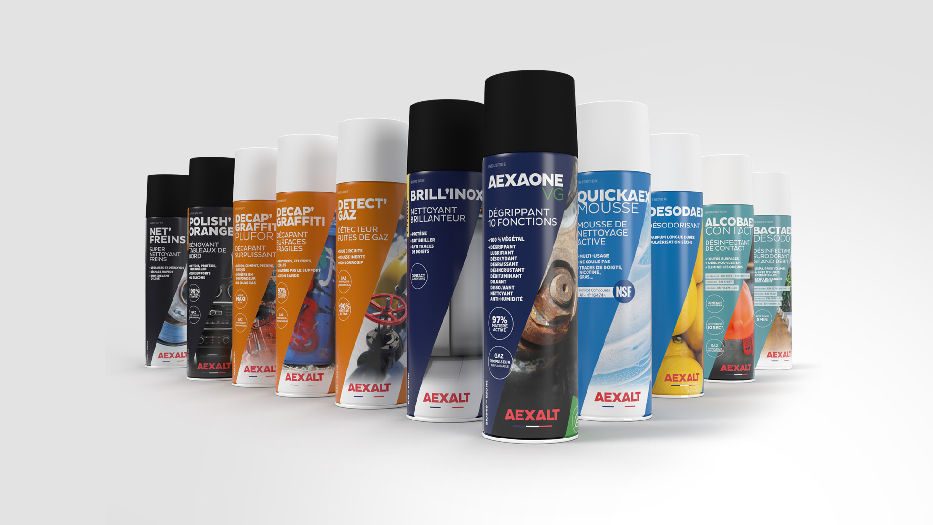 Pluho Aexalt est une société française indépendante, multi-spécialiste en produits de maintenance, de désinfection, d’entretien et d’hygiène pour l’industrie, le bâtiment et les collectivités. Pour célébrer les 20 ans de l’entreprise Pluho – qui commercialise les produits AEXALT – la marque a fait peau neuve. Une occasion d’aborder une nouvelle jeunesse et changer son identité visuelle. RED Agency a relifté le logo avec un A AEXALT personnalisé, identifiable à la marque et une nouvelle police. Un travail de clarification de la gamme a été effectué pour faire ressortir les spécificités de chaque produit : des étiquettes plus claires et des codes couleurs par famille.