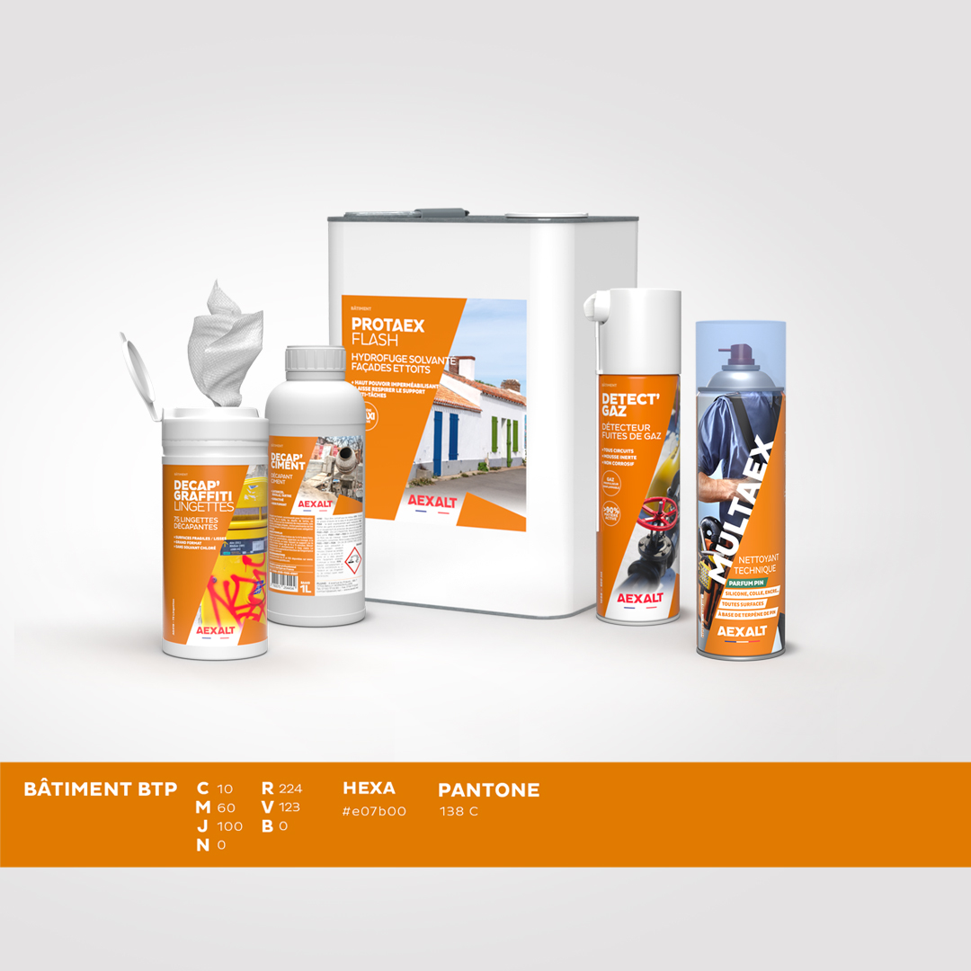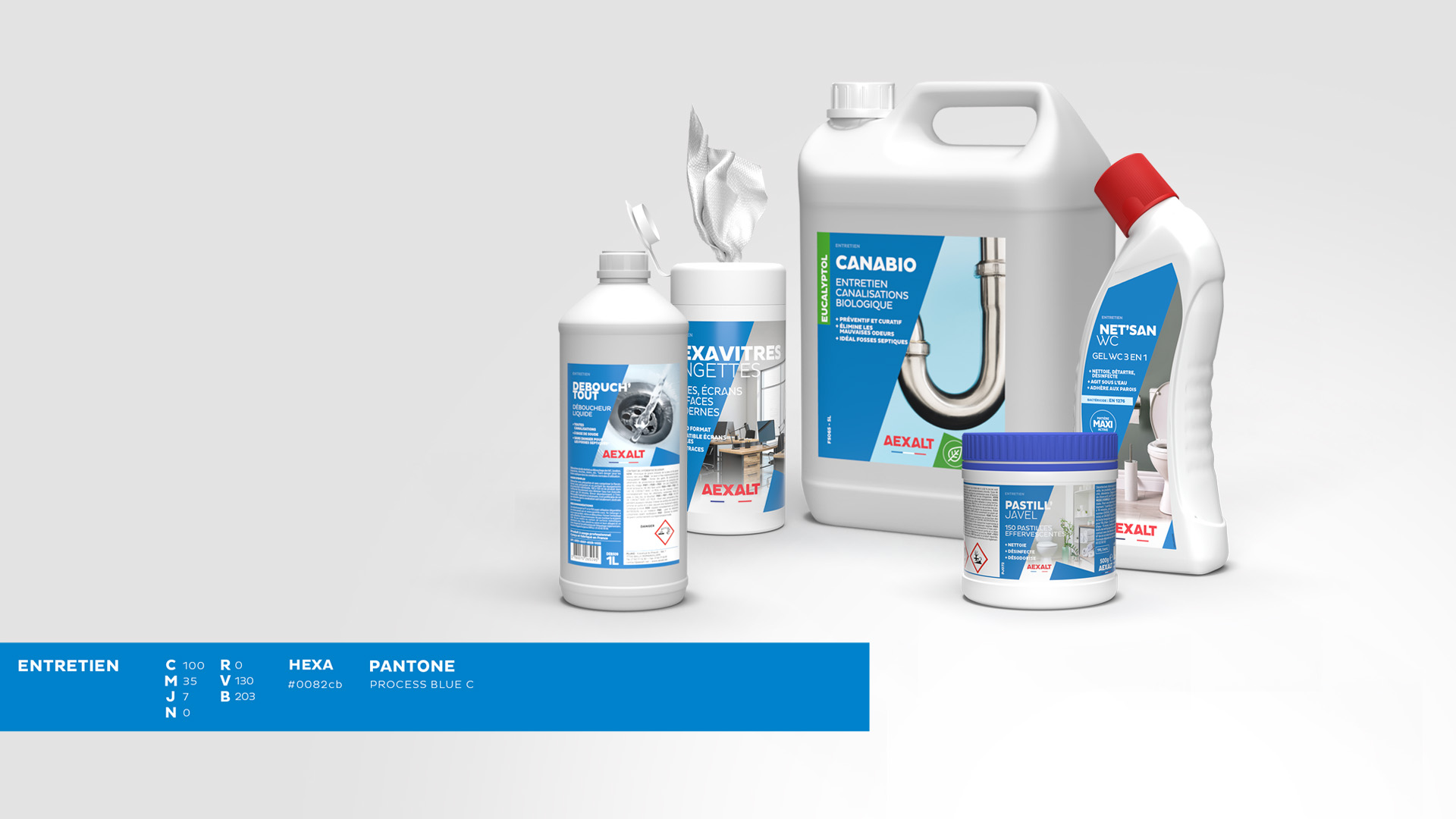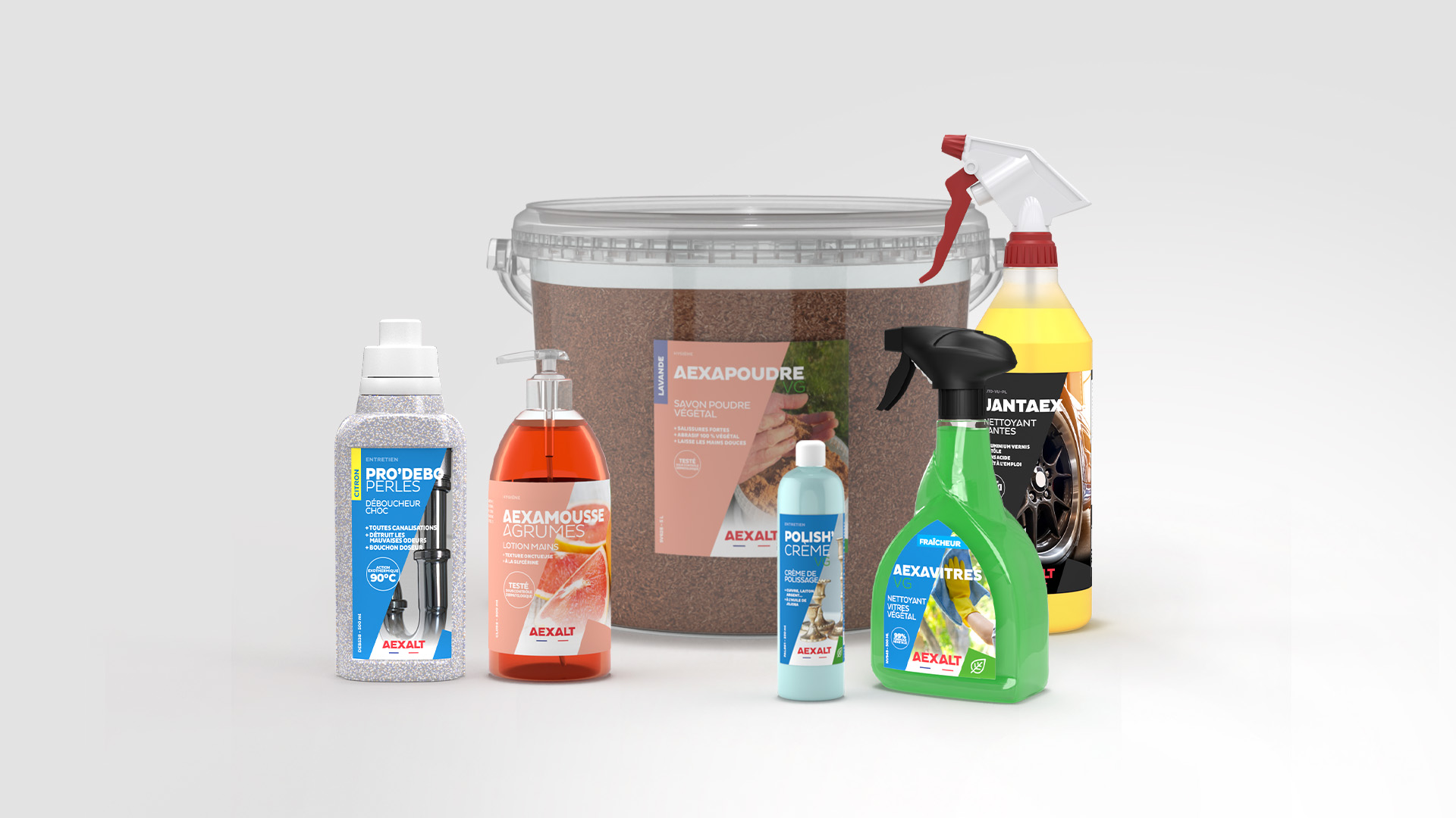 Pluho Aexalt est une société française indépendante, multi-spécialiste en produits de maintenance, de désinfection, d’entretien et d’hygiène pour l’industrie, le bâtiment et les collectivités. Pour célébrer les 20 ans de l’entreprise Pluho – qui commercialise les produits AEXALT – la marque a fait peau neuve. Une occasion d’aborder une nouvelle jeunesse et changer son identité visuelle. RED Agency a relifté le logo avec un A AEXALT personnalisé, identifiable à la marque et une nouvelle police. Un travail de clarification de la gamme a été effectué pour faire ressortir les spécificités de chaque produit : des étiquettes plus claires et des codes couleurs par famille.
