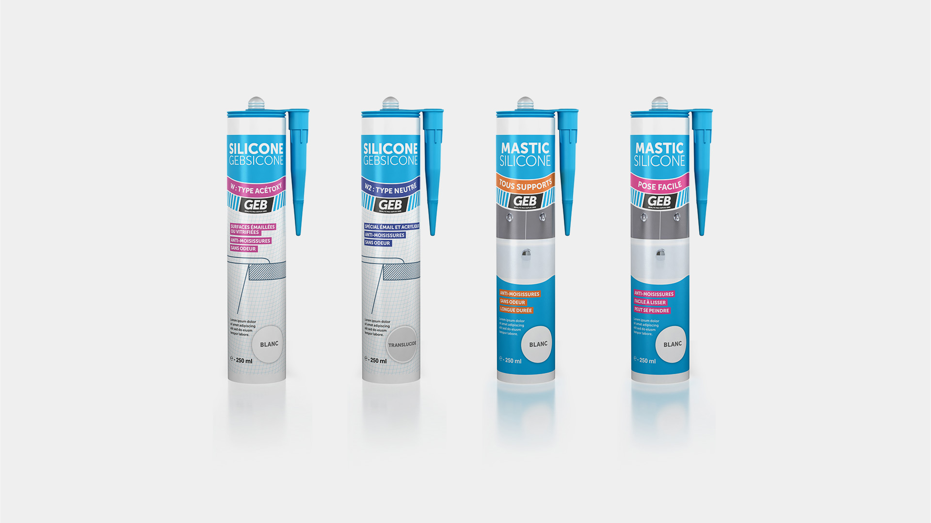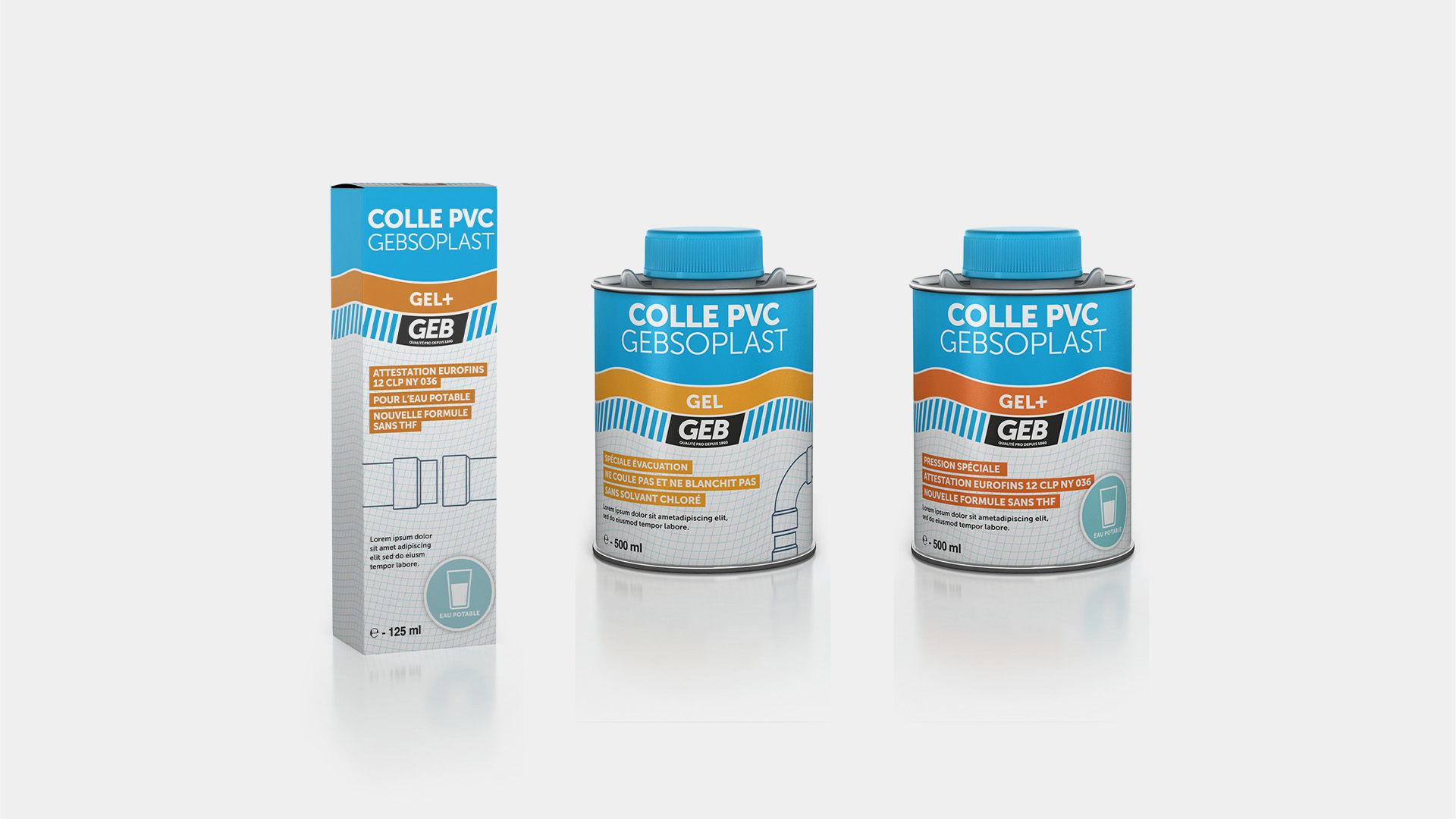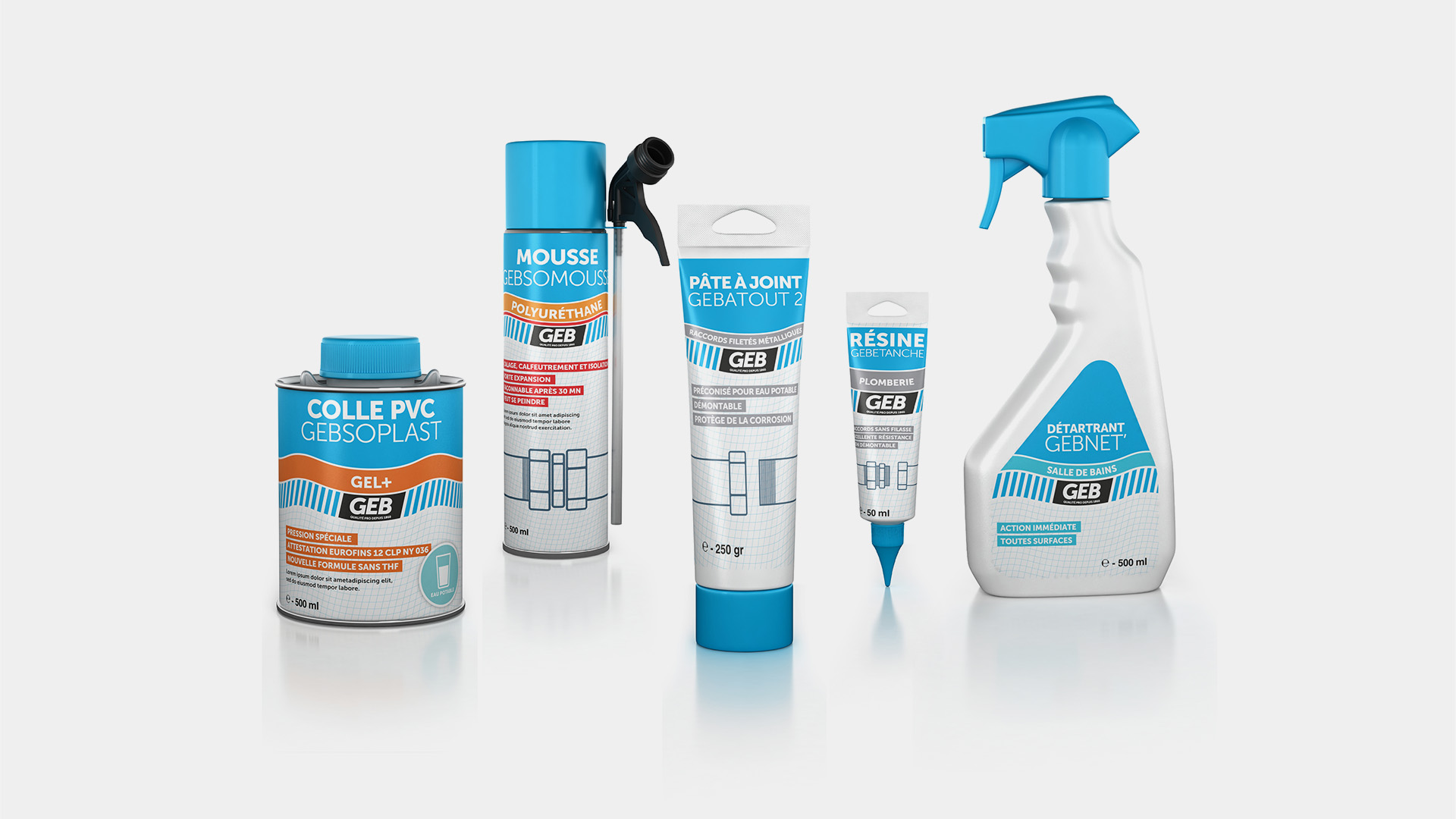 Deuxième fabricant français de colle PVC, leader des fabricants français et européens de colles et mastics réfractaires, GEB est présent dans 50 pays avec une volonté constante d’apporter à l’utilisateur professionnel ou particulier qualité, praticité, et sécurité. Une analyse du parcours client et une enquête terrain ont confirmé la nécessité de repenser l’identité marque et packaging. Objectif : être reconnu et créer la préférence de marque GEB en quelques secondes, grâce à une charte packaging simple et cohérente qui va ORIENTER, RASSURER, CONVAINCRE. Sur un portefeuille de plus de 700 références, le travail de RED AGENCY a constitué à :