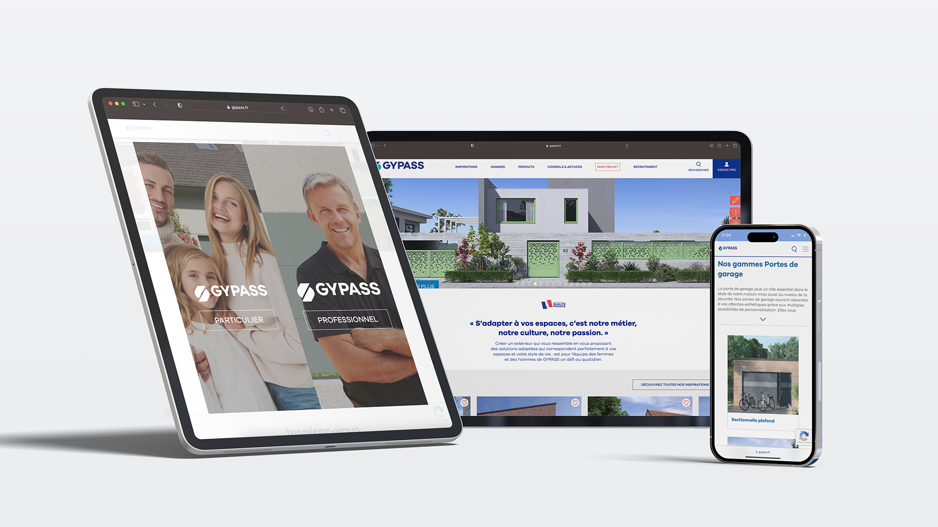 Spécialiste reconnu de la porte de garage depuis 1992, GYPASS a su évoluer vers la conception et la fabrication d’ouvrants sur-mesure, alliant savoir-faire artisanal et technologies de pointe. GYPASS propose des gammes, les plus complètes du marché : portes de garage, portails, clôtures, claustras, brise-vues et portes d’entrée. Avoir en permanence une démarche d’innovation et de créativité, permet à GYPASS de proposer des solutions uniques qui s’adaptent à chaque projet de ses clients.