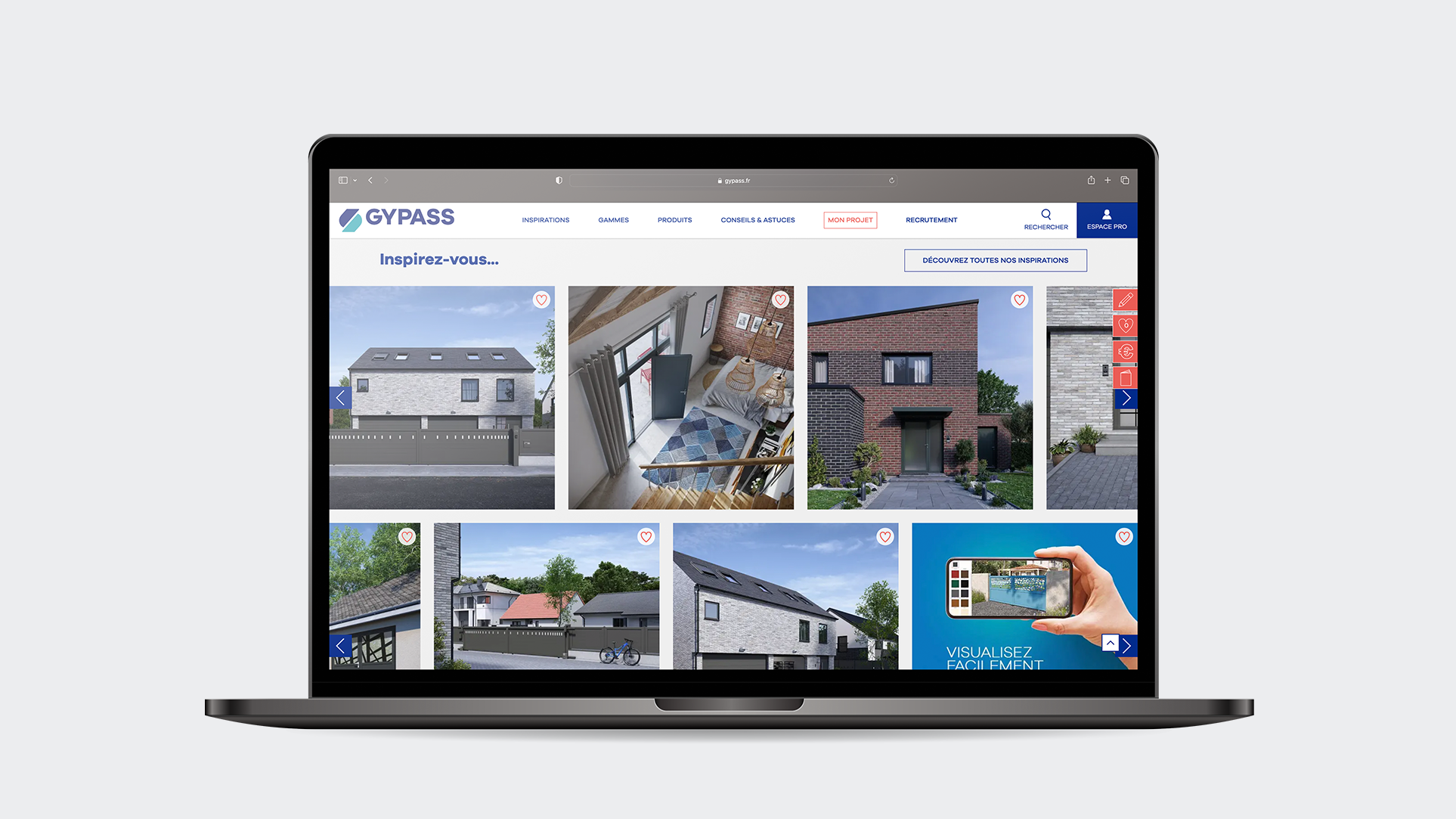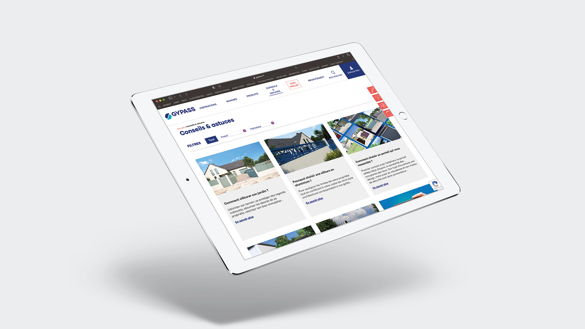 Pour répondre à un objectif « la personnalisation » de mon projet ! Le site Gypass.fr se devait d’avoir un webdesign plus actuel, « faire la part belle aux inspirations », indispensable ! pour la réalisation de « projets d’ouvrant » envers les particuliers. L’ergonomie améliorée, pour répondre aux usages du web et permettre la réalisation d’un avant-projet… avant la visite chez les distributeurs agrées. Une nouvelle arborescence répond aussi à cet objectif, sans impacter le référencement acquis au fil des ans. La création d’une rubrique « Conseils & Astuces », pensée pour répondre aux questions pertinentes des clients, tout en permettant d’optimiser le meilleur référencement possible du site dans les moteurs de recherche.