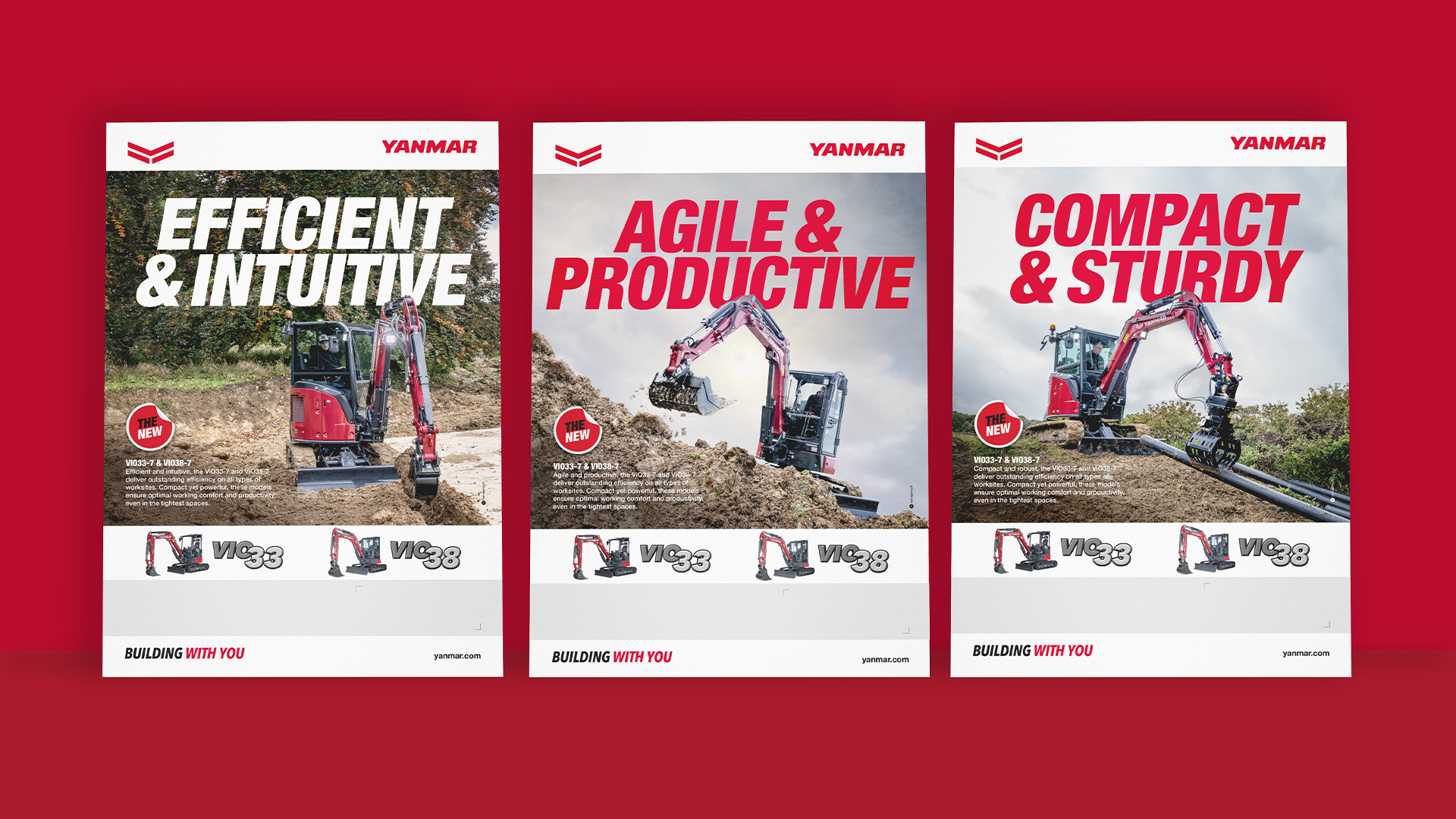 Yanmar a confié à RED AGENCY la création du visuel de 2 nouvelles versions de mini-pelles sur chenilles ViO33 et ViO38.