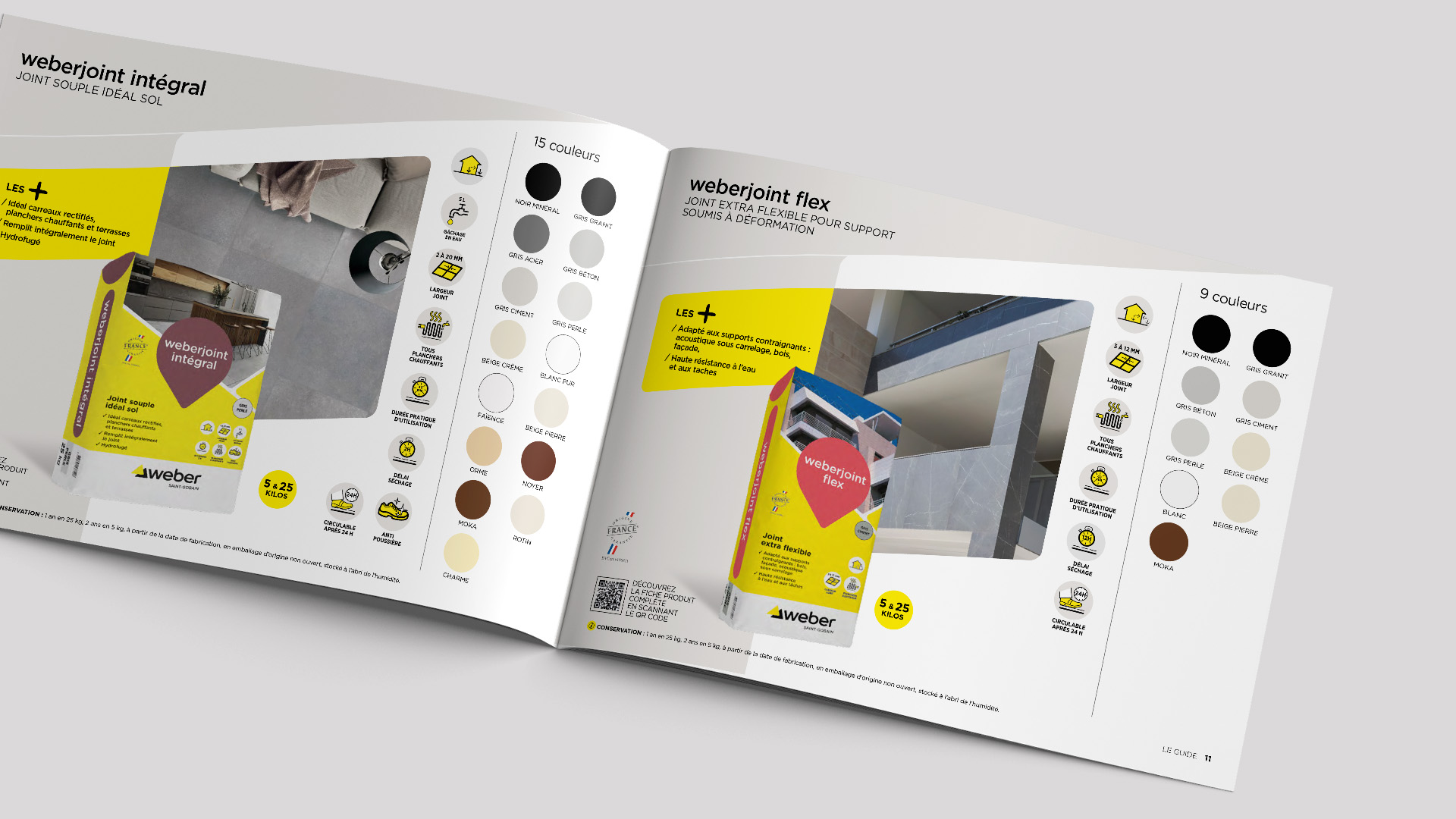 Weber a demandé à RED AGENCY de l’accompagner dans le lancement de sa gamme joints. Les objectifs : présenter une nouvelle gamme structurée (segmentation de la gamme par besoin et bénéfices produits), une nouvelle palette de couleurs et lancer un nouveau joint amélioré & un nouveau joint prêt à l’emploi.